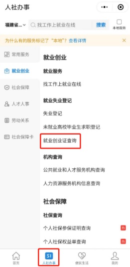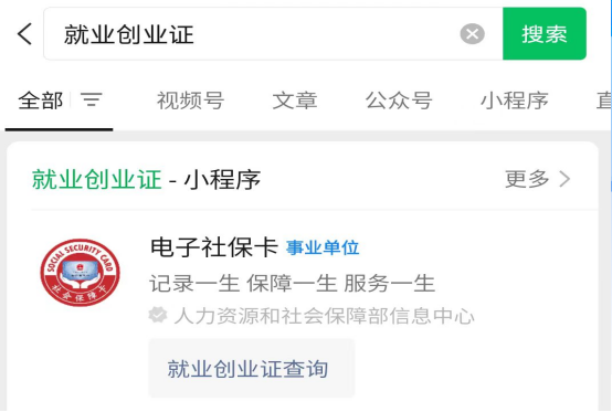 1.通過微信小程序“電子社??ā辈樵?。選擇“人社辦事”-“就業(yè)創(chuàng)業(yè)”-“就業(yè)創(chuàng)業(yè)證查詢”;也可直接檢索“就業(yè)創(chuàng)業(yè)證查詢”,登錄后輸入證書編號即可查看。