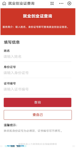 3.通過全國《就業(yè)創(chuàng)業(yè)證》查詢系統(tǒng)查詢