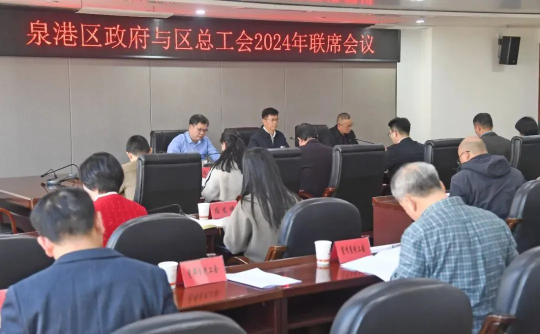 12月18日下午,泉港區(qū)政府與區(qū)總工會召開2024年聯(lián)席會議,通報區(qū)總工會2024年主要工作情況,商議提請本次聯(lián)席會議研究的有關(guān)問題。區(qū)政府區(qū)長楊鳳翔,區(qū)委常委、組織部部長、區(qū)總工會主席陳永潔,區(qū)政府副區(qū)長莊一鳴、柯永進參加會議。